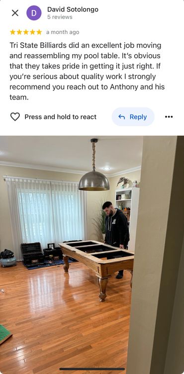 Proffesional pool table services offered to all in the tri-state area!